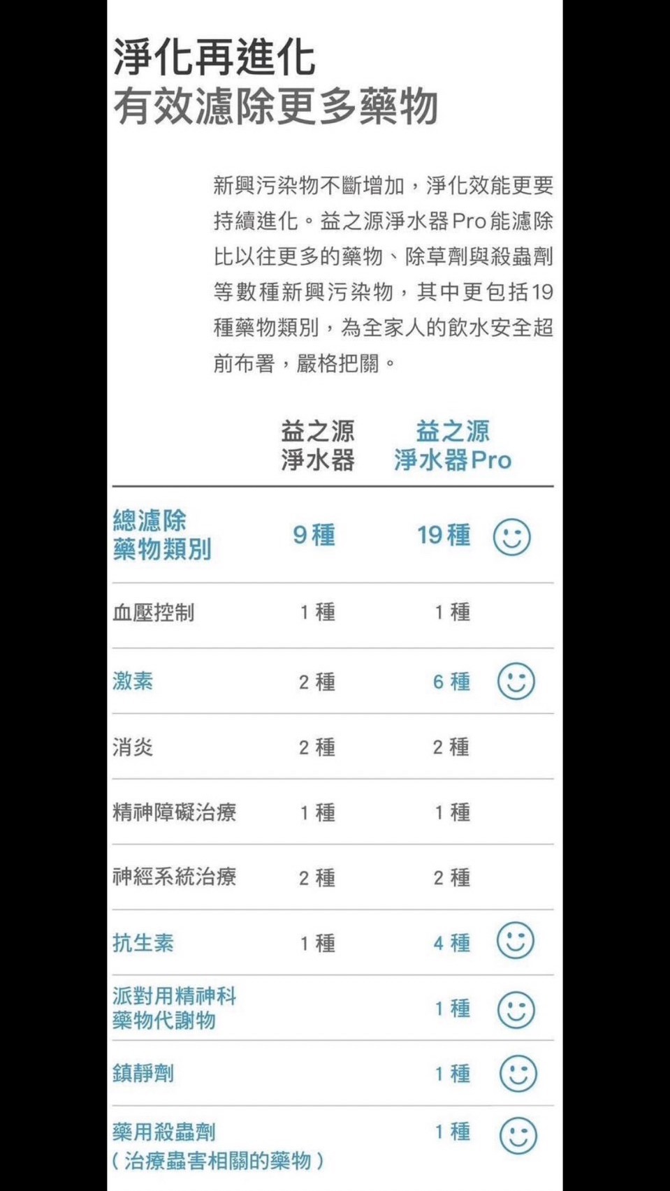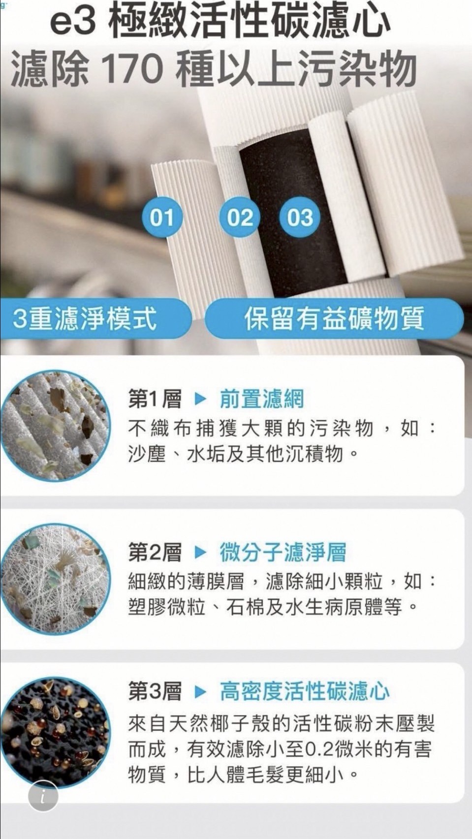 3重濾淨模式,有效濾除170種以上污染物,包括微塑膠、PFAS及藥物殘留