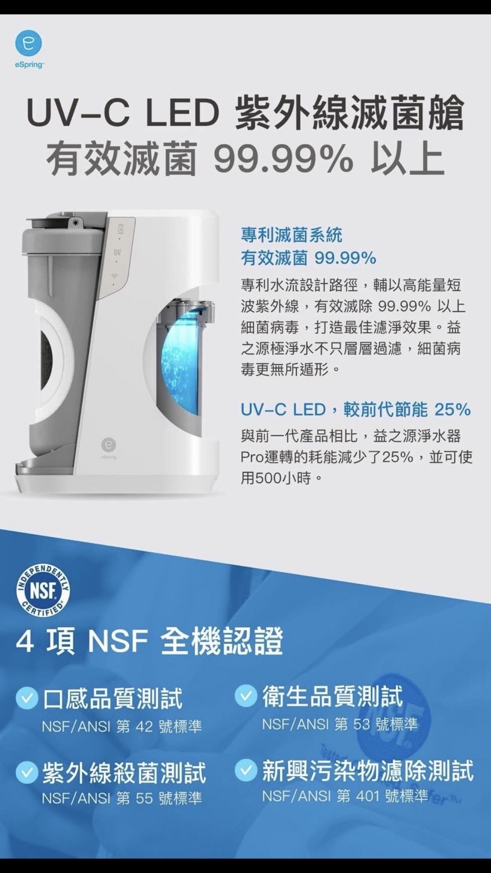擁有NSF4項全機認證,